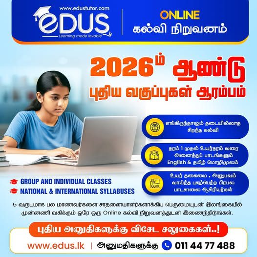 உயர் தரமான Online கல்வி, நிரூபிக்கப்பட்ட முடிவுகள் மற்றும்மாணவர்களுக்கு தனிப்பட்ட கவனத்துடன் – EDUS இன்று ஆயிரக்கணக்கான குடும்பங்களின் நம்பிக்கை.