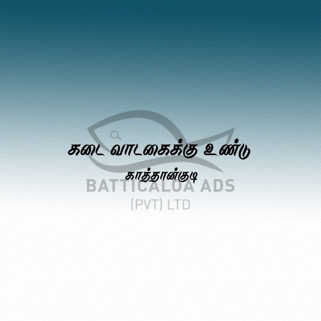 காத்தான்குடி ஸாவியா வீதியில் ஹனா அகடமியின் கீழ் தளத்தில் அமைந்துள்ள மூன்று கடைகளில் 12 அடி அகலம், 30 அடி நீளம் அளவுடைய ஒரு கடை வாடகைக்கு உண்டு
