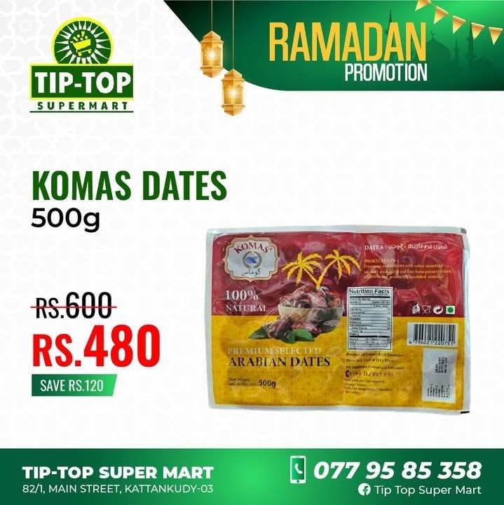 புனித றமழானை முன்னிட்டு அதிரடி விலைக் கழிவு ……09/03/2025 வரை உங்கள் டிப் டொப் சுப்பர் மார்ட் யில்….